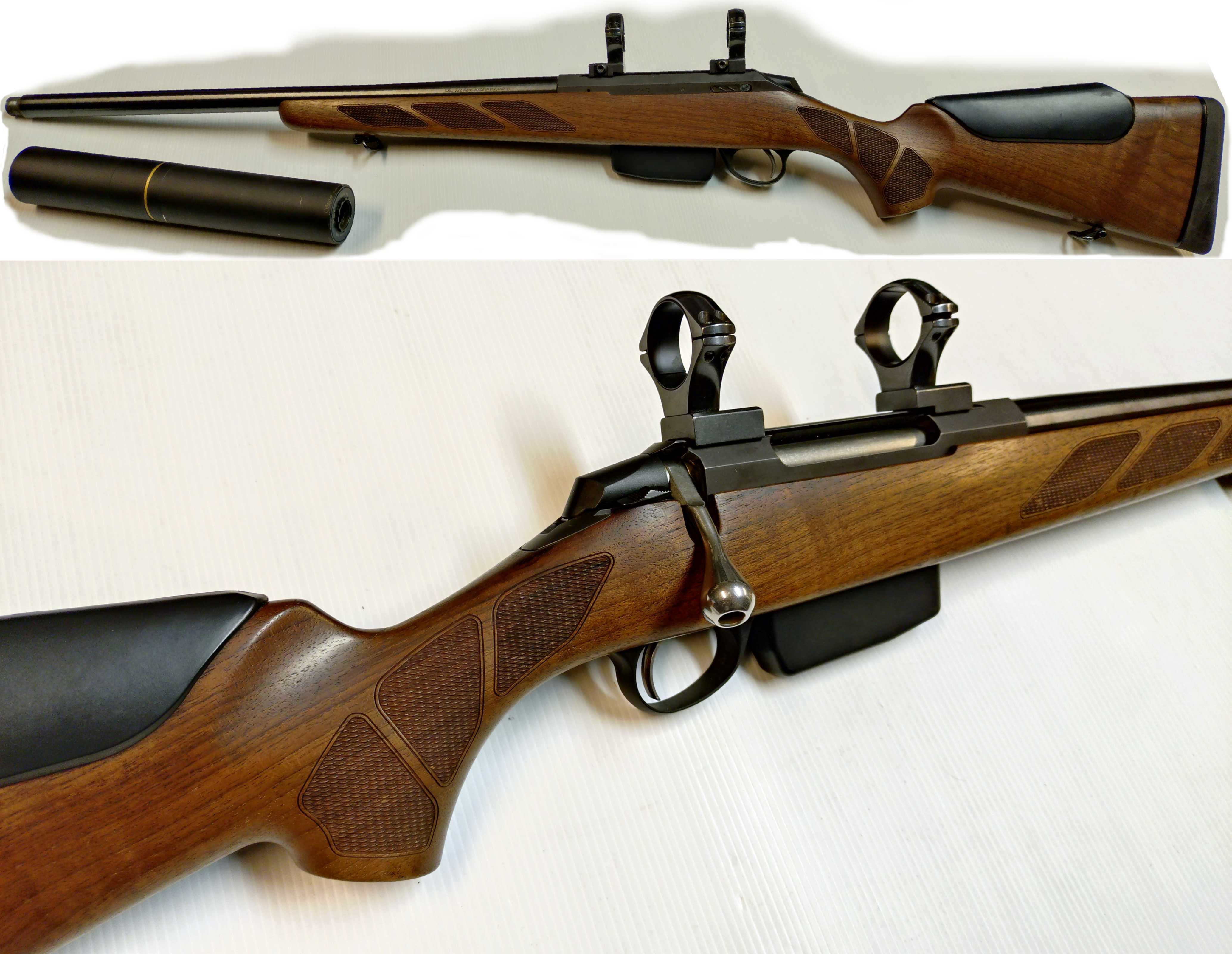 alt ära võetav salv (5 padrunit), summuti keere M18x1, puitlaad, 30mm optika rõngad |